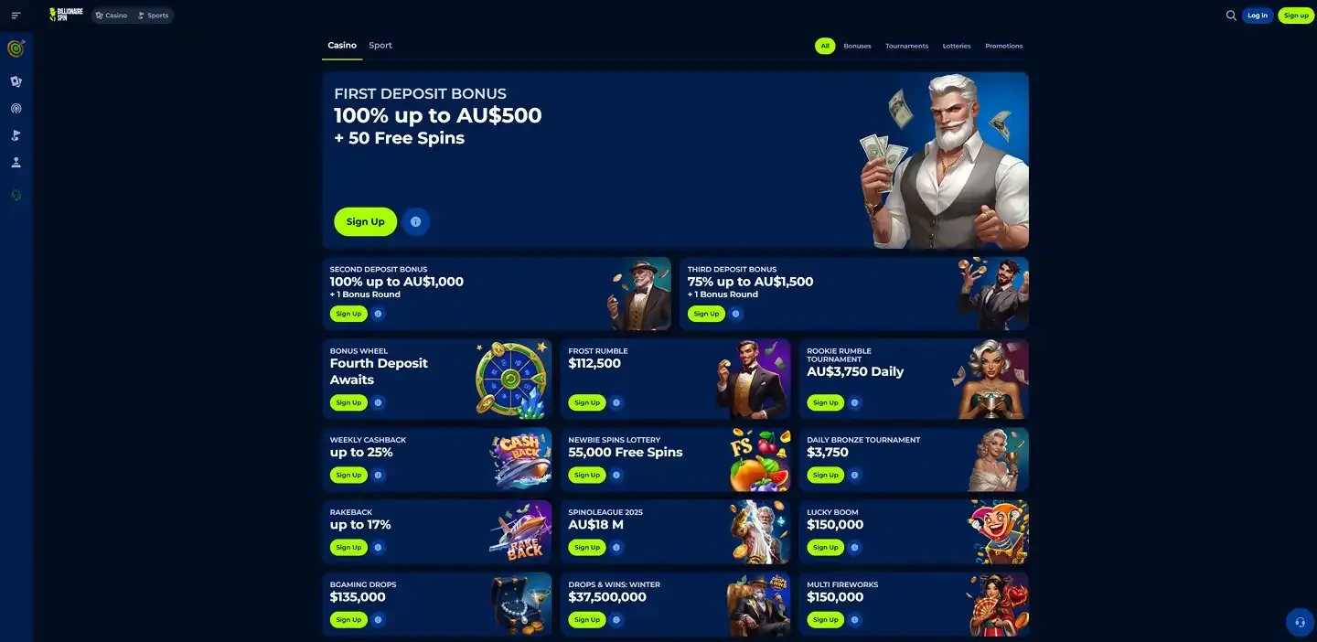 Billionaire spin Casino Promotions & Bonuses