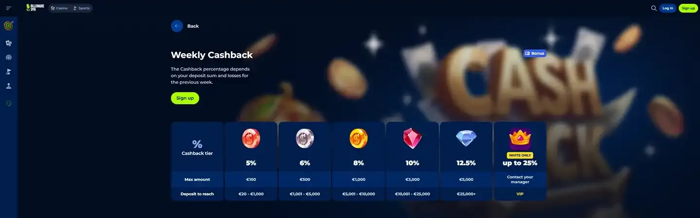 Bonus Live Casino chez Billionaire spin Casino